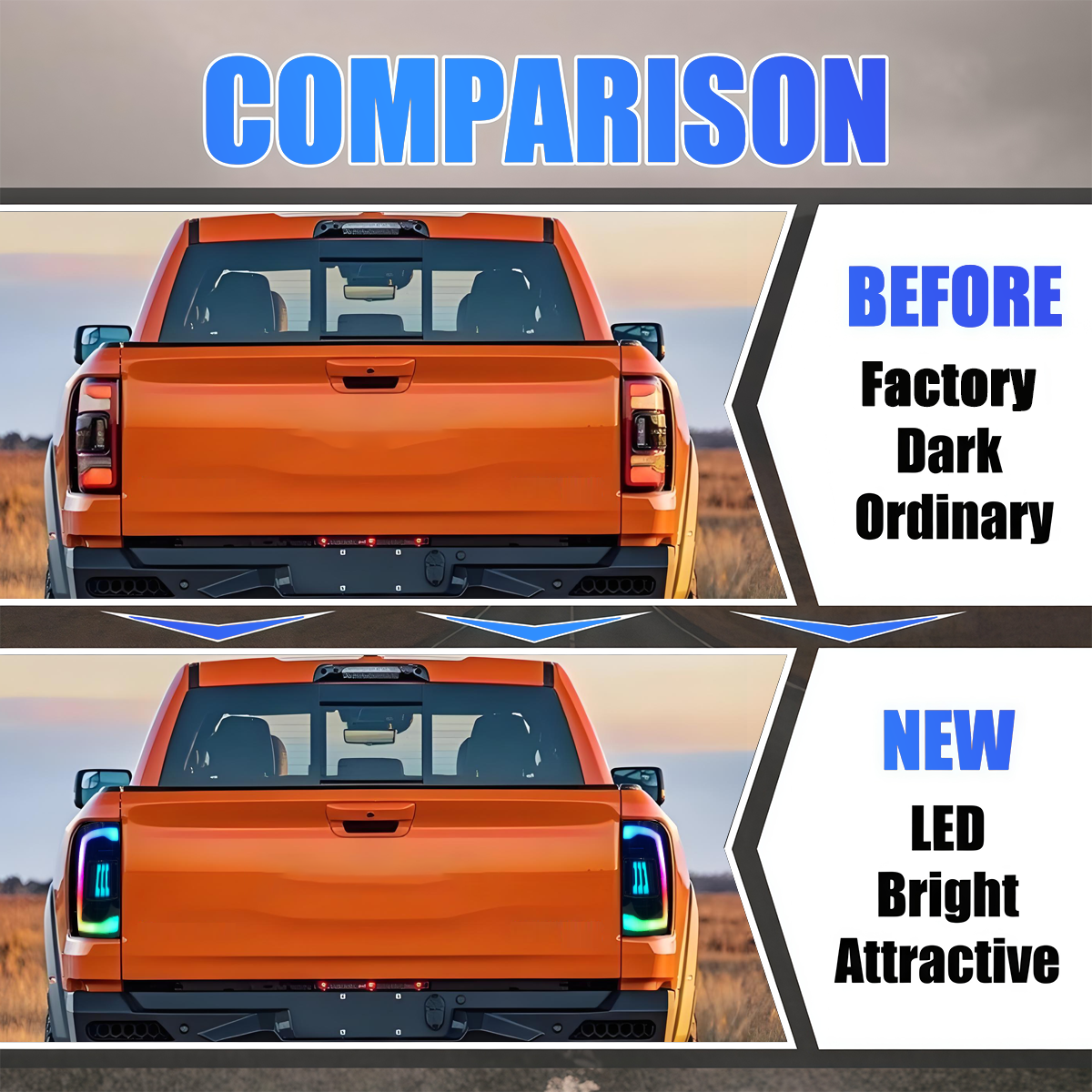 Incluye cuatro barras de luz LED de alto rendimiento para funciones de freno y cola, señales de giro ámbar secuenciales y potentes luces de marcha atrás (elija estilo estándar o LED mejorado).