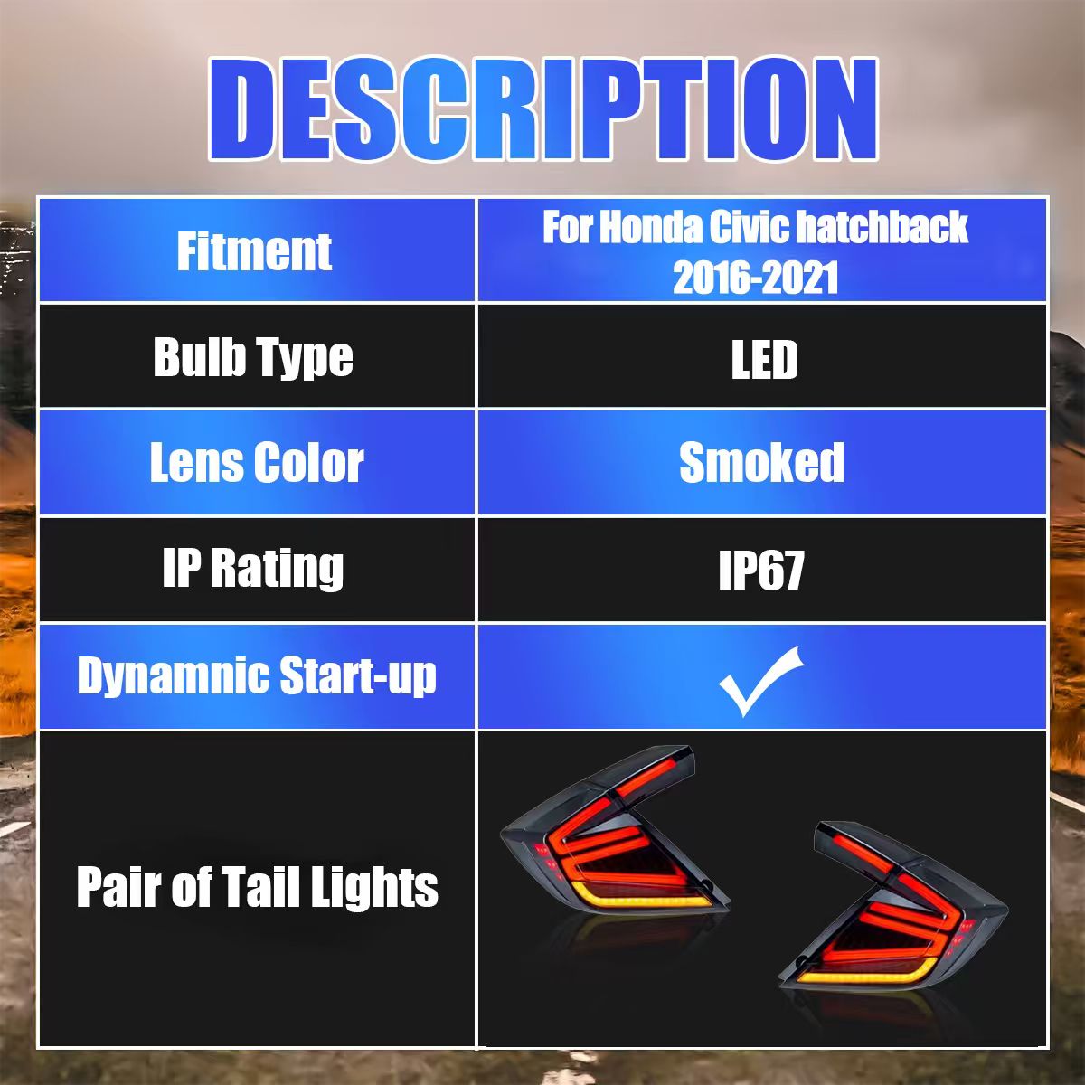 Honda Civic Hatchback 2016-2021 Tail Lights