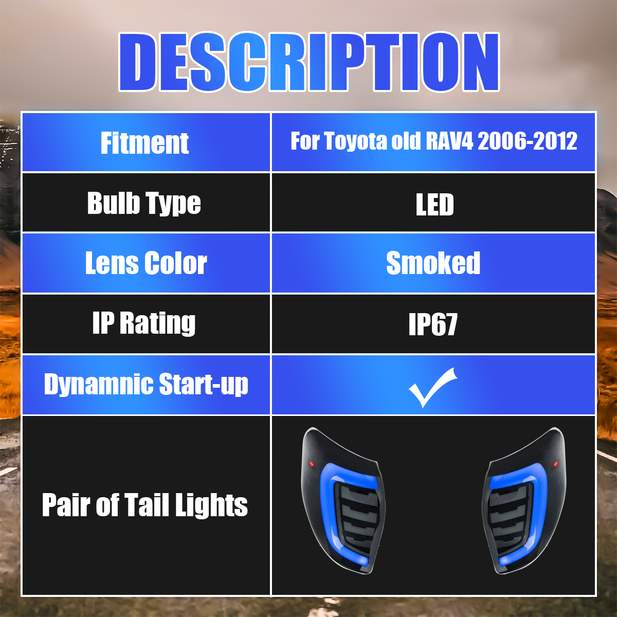 Notice: The Blue version is the Smoked version with an added blue startup animation. This blue light only appears during the startup sequence—while driving, the tail lights remain standard red.